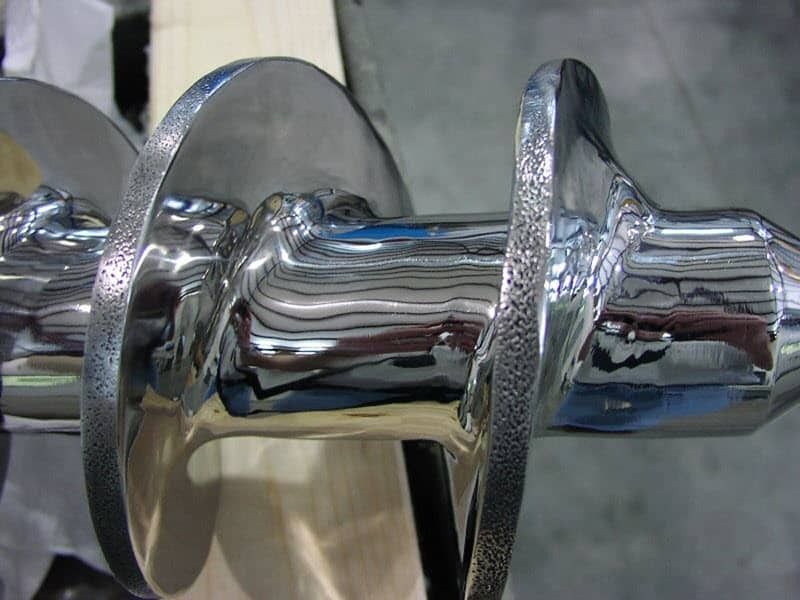 The required surfaces were polished to Harrison C-75 specifications. The shaft and flight faces of the conveyor screw were polished to reduce product adhesion. The OD surface was not polished so that the critical dimension was not altered. The customer saw a significant reduction of product buildup. Interval between cleaning shutdowns was increased. Time required to perform cleaning operation was decreased. Drive motors no longer experienced elevated loads.